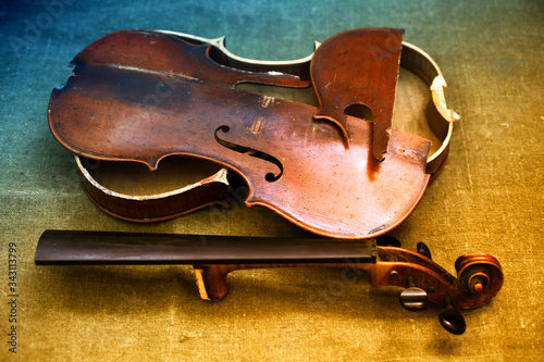 Old Broken Violin Rainbow Tinted Wall Mural Wallpaper Murals Bogdan Steblyanko